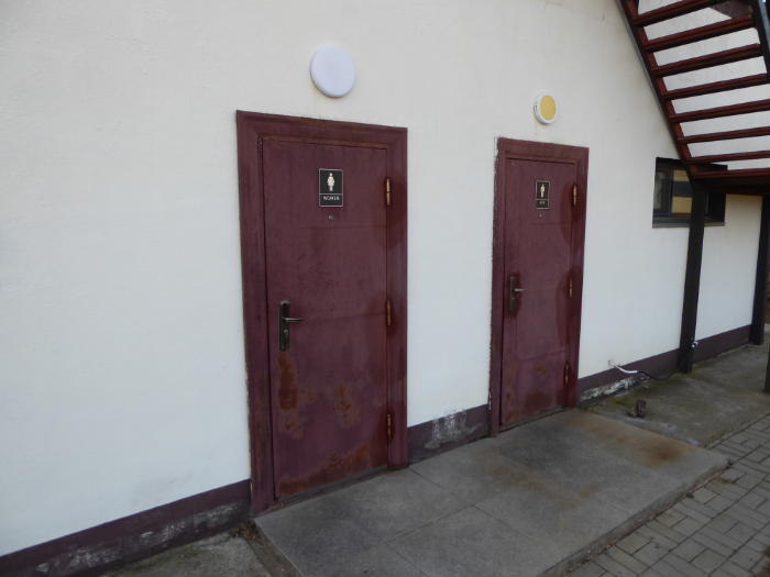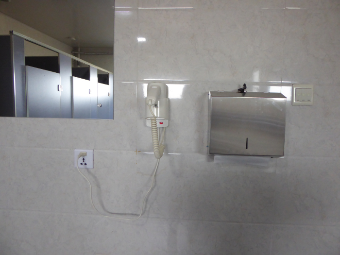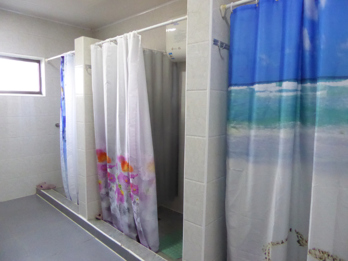 ツーリストキャンプの中央にある建物には、男女別の洗面所やトイレ、シャワー室などの設備が整っています。