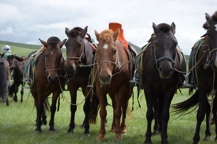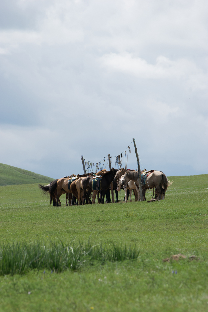 草原には遊牧民たちが家畜を放牧しに訪れることもあり、その様子も楽しめます。