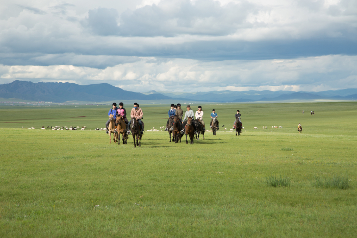 草原には遊牧民たちが家畜を放牧しに訪れることもあり、その様子も楽しめます。